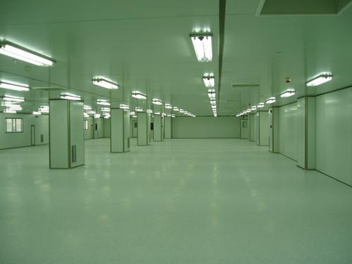 在土建装修设计时,洁净车间控制(control)区的地面应考虑(consider)做成不易积灰便于清洗的水磨石地面,白瓷(英文:White Porcelain)砖墙面应到顶,顶棚抹灰应光滑,并用白色聚胶脂涂料罩面,墙与地面相交处宜为光滑的圆弧角,室内尽量避免和减少死角。洁净车间净化厂房墙、顶板材一般多采用50mm厚的夹芯彩钢板制造,其特点为美观、刚性强。圆弧墙角、门、窗框等一般采用专用氧化铝型材制造,地面可采用环氧自流坪地坪或高级耐磨塑料地板,有防静电要求的,可选用防静电型。